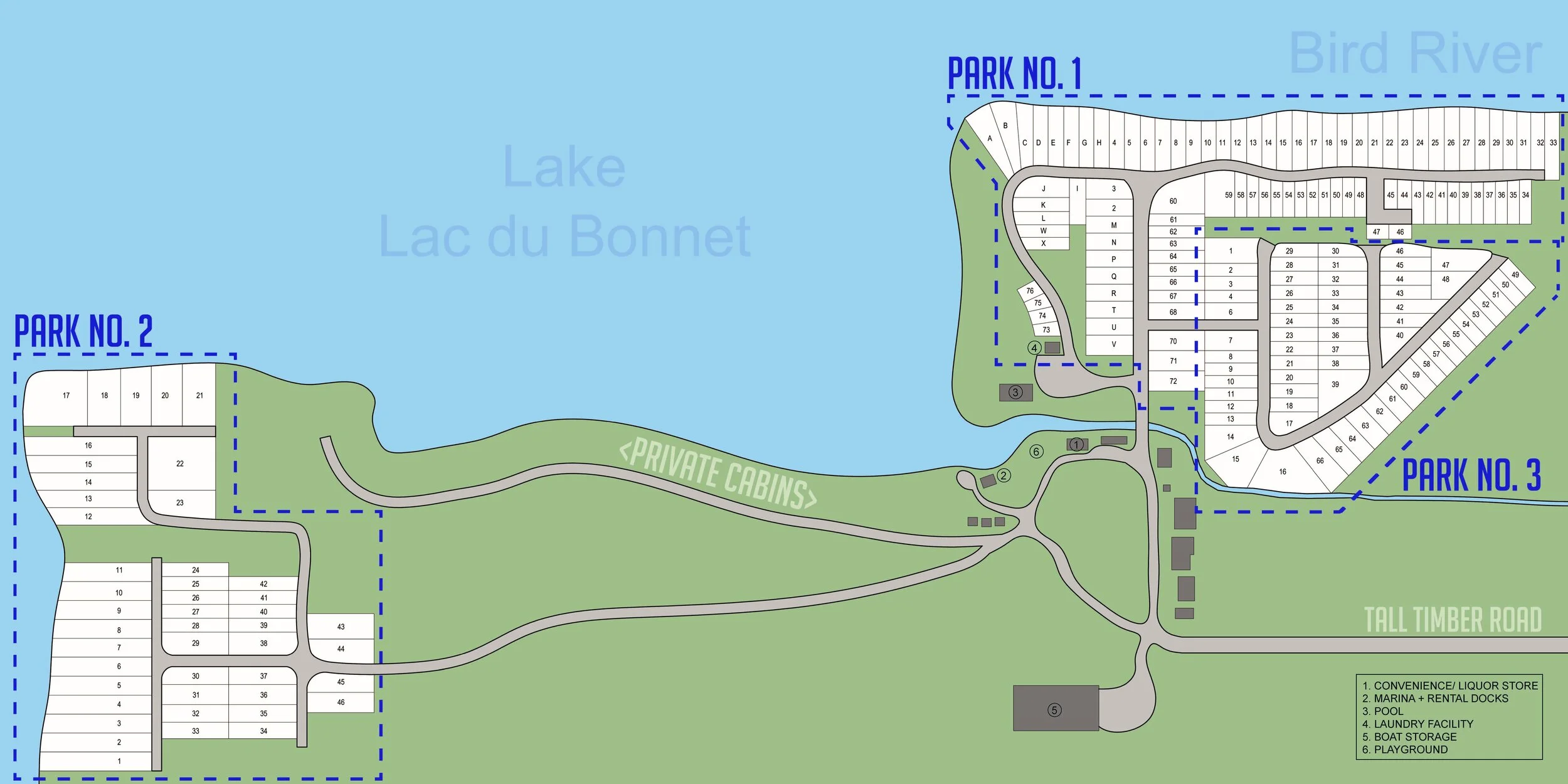 Each seasonal site is fully serviced with 30 amp hydro and sewer. Tenants are on individual hydro meters, which are read annually by Tall Timber Lodge and billed accordingly. All tenants are required to pay a minimum $100 fee per year for hydro, if you exceed that amount you will be charged the difference. All lots include a below grade holding tank which is the tenants responsibility to empty as required.